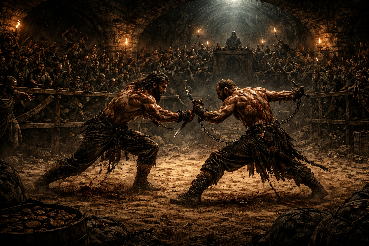 Hier drängen sich Zuschauer Schulter an Schulter: Bettler, Schmuggler, Söldner, Händler und manchmal sogar Adlige in Verkleidung. Alle sind sie von derselben Sache angezogen – der brutalen Faszination verbotener Kämpfe.
